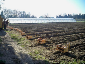 En 2005, le GRAB a mis en place un essai sur sa station afin dévaluer l’intérêt de la technique des planches permanentes en maraîchage biologique, en comparaison avec un itinéraire « classique ». L’objectif est de trouver des alternatives aux techniques avec labour, afin d’améliorer la fertilité du sol et de diminuer les coûts de carburant et de main d’œuvre liés aux opérations de préparation de sol. Sur le site du GRAB, la technique des planches permanentes, évaluée sur un itinéraire à base d’Actisol et de MTCS (outil de préparation finale comportant notamment des disques étoiles), s’est avérée peu adaptée les premières années de mise en œuvre, avec des indicateurs plutôt négatifs : structure compactée, activité microbienne inférieure, fertilité potassique et azotée inférieures et rendements diminués de 15%. Après une année d’engrais vert longue durée en 2008, et une modification de l’itinéraire technique sur les planches (utilisation d’un griffon en remplacement de l’actisol, affinement de la surface à la herse rotative), les résultats obtenus s’avèrent moins tranchés.