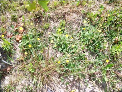 L’épervière piloselle s’est peu développée pendant l’hiver. Au printemps, la végétation a bien repris, avec émissions de stolons supplémentaires. On observait au mois de juin une couverture pouvant atteindre 60% d’occupation du sol, avec une grande hétérogénéité sur le rang.