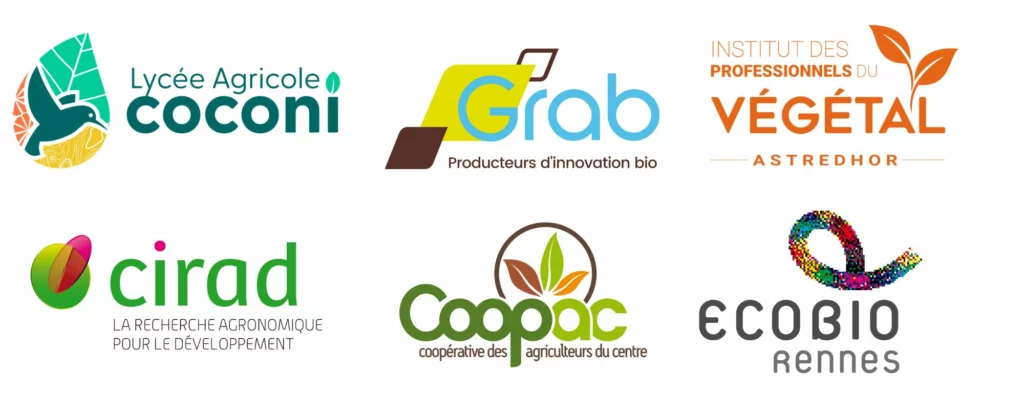 Lycée agricole de Coconi, la COOPAC (Coopérative des Agriculteurs du Centre), le CIRAD, (Centre de coopération Internationale en Recherche Agronomique pour le Développement), le Grab (Groupe de Recherche en Agriculture Biologique), l’Astredhor (Institut technique de la filière horticole) et l’Université de Rennes (UMR ECOBIO).